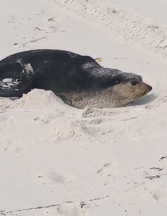 Um lobo-marinho-subantartico foi avistado neste sábado (7), na Praia do Foguete, em Cabo Frio. Ele parecia descansar e chamou a atenção de quem estava no local.