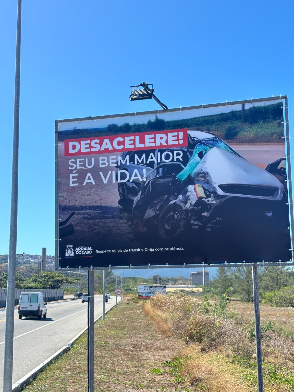 A sinalização na RJ-140, na entrada de Arraial do Cabo, foi reforçada pela prefeitura para alertar os motoristas sobre os riscos de acidentes no trecho, principalmente no ponto conhecido como “curva da morte”, cenário de vários acidentes.