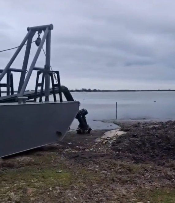— e uma draga, já instalada, que fará a retirada do material em áreas mais profundas da laguna.