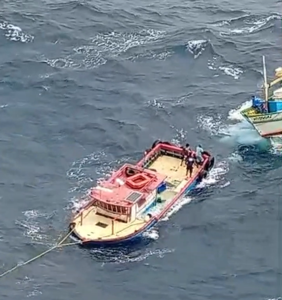 Imagens divulgadas nas redes sociais mostram a tensão durante o resgate dos três tripulantes. Todos foram resgatados por uma embarcação pesqueira que estava próxima e passam bem.