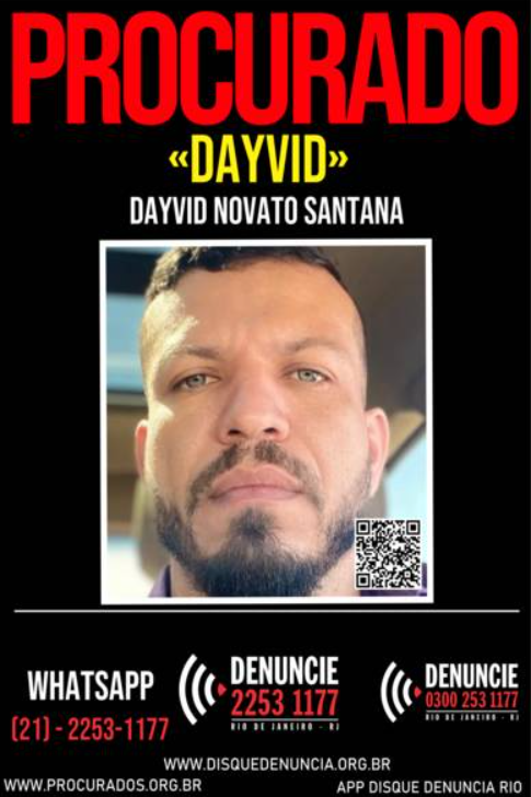 O Disque Denúncia solicita que qualquer informação sobre o paradeiro de Dayvid Novato Santana seja repassada de forma anônima pelos canais: (21) 2253-1177, 0300-253-1177, WhatsApp (21) 2253-1177 ou pelo aplicativo Disque Denúncia RJ. O anonimato é garantido.