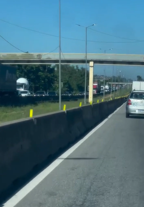 Imagens registradas por volta das 8h mostram lentidão acentuada, com motoristas enfrentando o tradicional gargalo da saída do Rio de Janeiro. A maioria desses condutores busca acessar a RJ-124 (ViaLagos), principal via de acesso às cidades praianas.