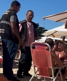 A atriz Luma de Oliveira acionou a fiscalização municipal após encontrar um grupo utilizando caixa de som na Praia da Ferradura, neste domingo (15), em Armação dos Búzios, na Região dos Lagos.