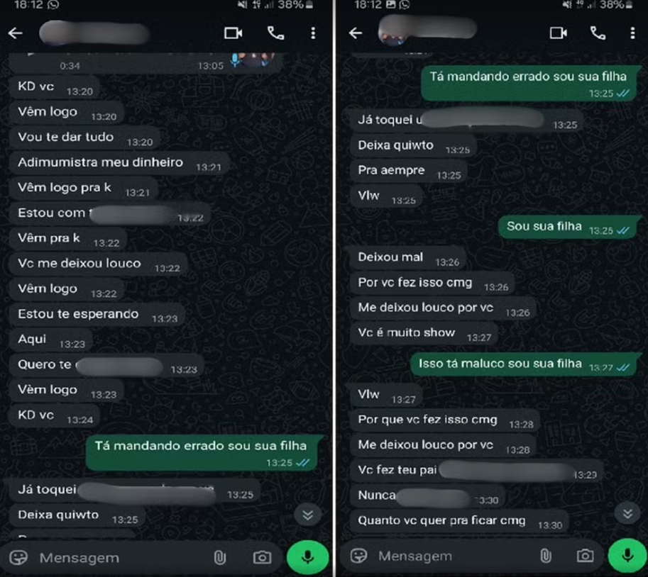 No dia seguinte, a vítima contou à mãe que suspeitava que algo pudesse ter acontecido, mas não tinha certeza. A confirmação veio no dia 15 de março, quando o pai enviou mensagens e áudios com declarações sugestivas e teor sexual.