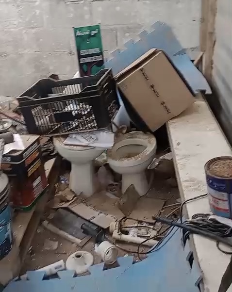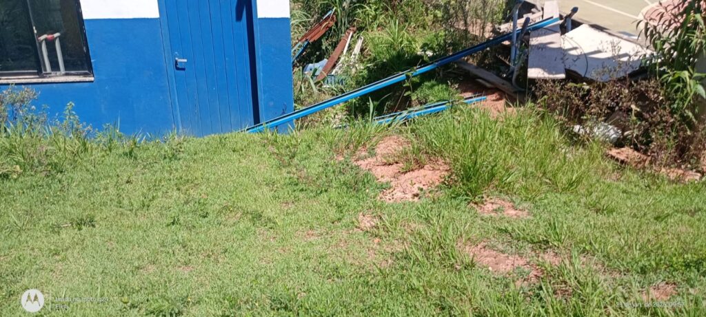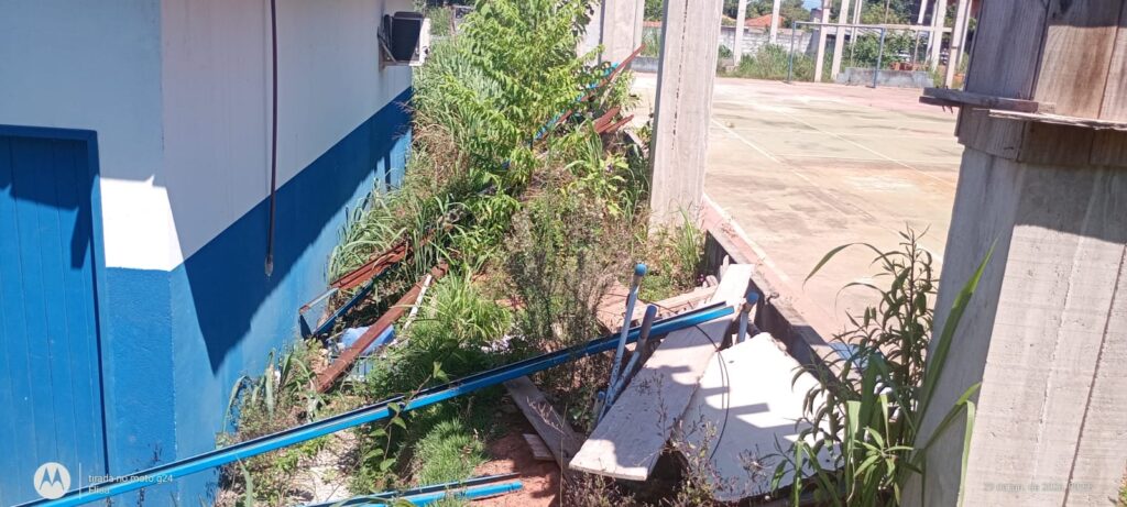 Em volta da escola é possível ver restos de materiais de construção e muito lixo. Dentro da unidade, ficou o que restou do material que deveria ser usado. Os responsáveis pelos alunos reclamam dos riscos que as crianças são expostas em meio a esses materiais e entulho.