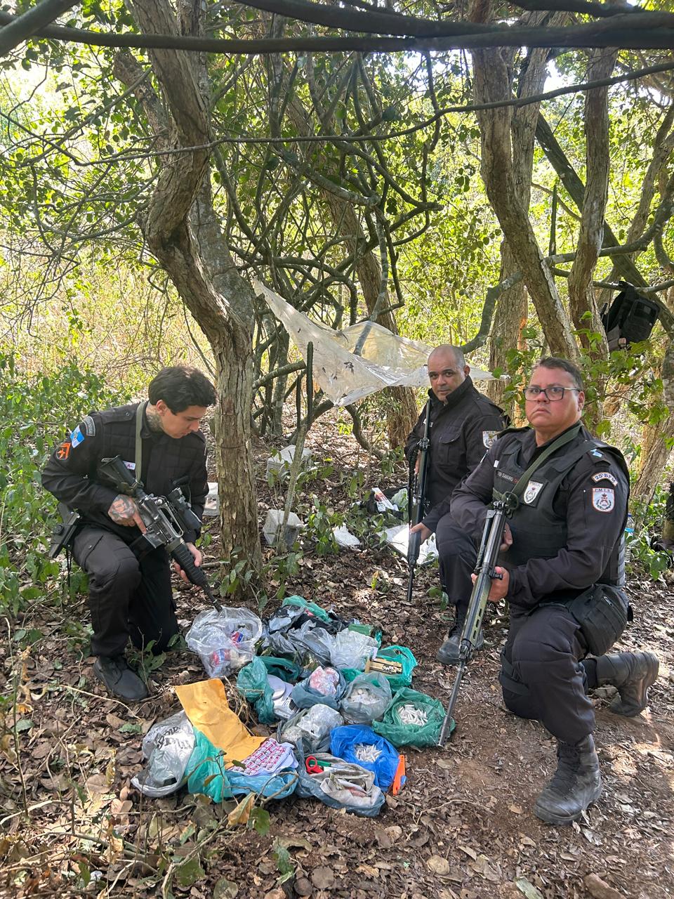 Policiais militares do batalhão da Região dos Lagos apreenderam grande quantidade de drogas enterradas em área de mata, nesta sexta-feira (2), em Búzios. Segundo a PM, os agentes receberam denúncia sobre onde estaria escondido material.