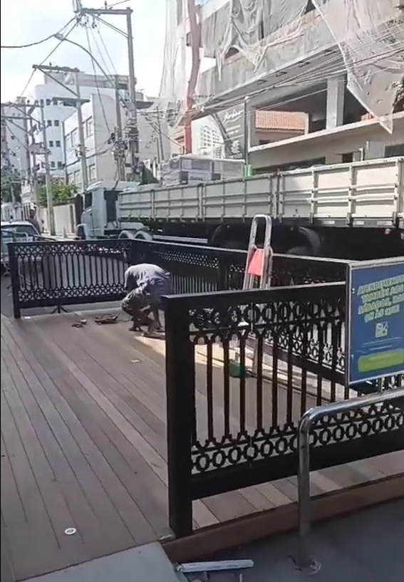 A nova varanda urbana está sendo instalada na Rua Raul Veiga, no Centro, uma das mais movimentadas da cidade. A moradora questiona a instalação do espaço no local, alegando que a rua é muito movimentada e há uma escola próxima, o que dificultaria ainda mais a mobilidade no local. “São duas vagas a menos”, diz a moradora.