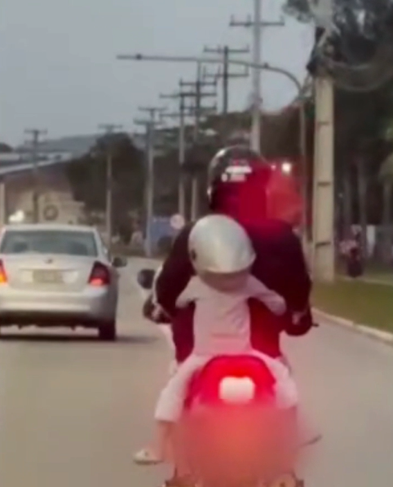 Um outro registro mostra uma criança tentando se equilibrar na garapa de uma motocicleta. O registro foi feito próximo a entrada da Base Aérea. De acordo com o Código de Trânsito Brasileiro, é proibido transportar crianças menores de 10 anos em motocicletas. Para crianças com mais de 10 anos, o transporte só é permitido se elas tiverem condições físicas e de desenvolvimento de cuidar da própria segurança, como ter altura para alcançar as pedaleiras e capacidade de se segurar firmemente. A infração por desrespeito à lei é gravíssima e acarreta multa, suspensão do direito de dirigir e retenção do veículo.