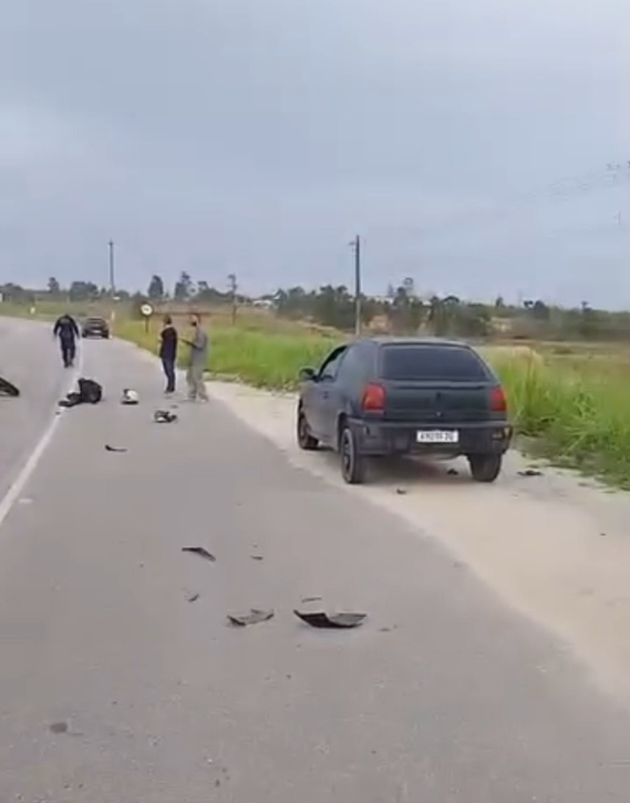 Um acidente grave foi registrado na manhã desta sexta-feira (14) na Rodovia Amaral Peixoto (RJ-106), na altura da Distribuidora LM, em São Pedro da Aldeia. A colisão envolveu uma motocicleta e um carro de passeio. O motociclista, identificado como Lucas Santos, perdeu parte do pé.