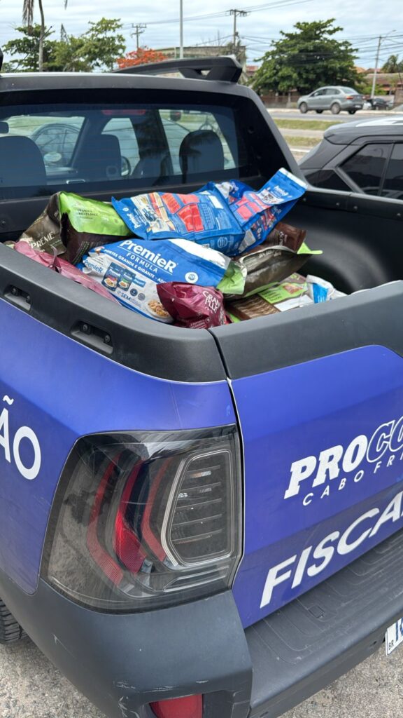 Uma ação de fiscalização do Procon Cabo Frio retirou de circulação 124,5 kg de ração para cães, gatos e pássaros, nesta quinta-feira (27), em uma loja localizada na Avenida Independência, em Unamar, no segundo distrito de Tamoios. O material apreendido estava com validade vencida ou sendo vendido a granel, sem as embalagens originais — o que impede a conferência das informações obrigatórias.