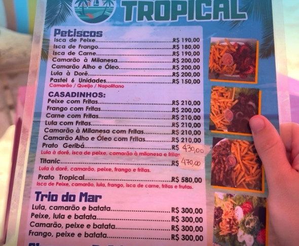 Em Armação dos Búzios, fotos de um cardápio atribuído a uma barraca localizada na Praia de Geribá circularam amplamente nas redes. Os valores chamaram atenção: R$ 150 por uma porção com seis pastéis e até R$ 580 por um prato identificado como “tropical”. A repercussão foi tão grande que o caso ganhou destaque nacional e foi citado no programa “Encontro”, da TV Globo, exibido na manhã desta terça-feira (30).