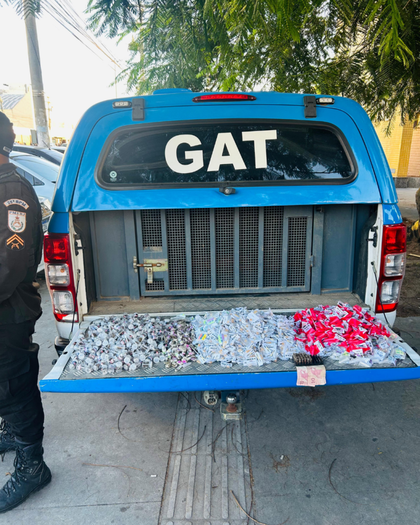 Ainda de acordo com a polícia, ao chegar ao local, a equipe abordou um adolescente de 15 anos. Com ele, foram apreendidos 50 pedras de crack, 188 pinos de cocaína, 203 buchas de maconha e R$ 20,00 em espécie.