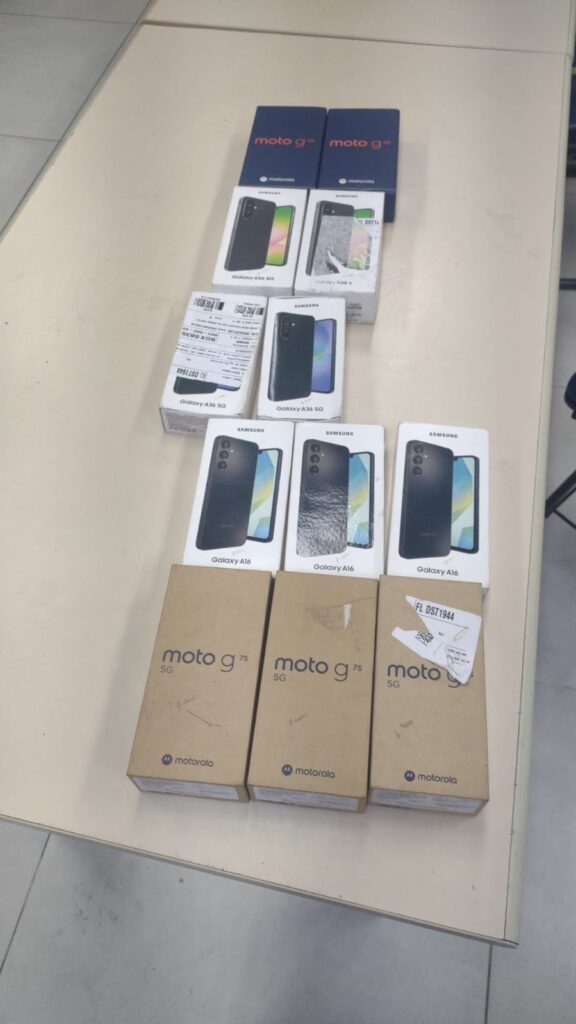 Após investigações, a polícia conseguiu encontrou 12 celulares roubados, avaliados em cerca de 16,5 mil. Os aparelhos estavam enterrados em uma casa na Rua dos Macacos, em Unamar.