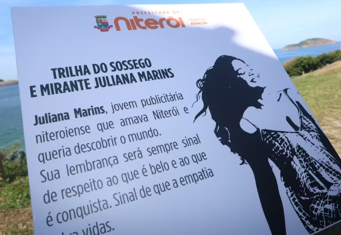 A Prefeitura de Niterói inaugurou, nesta terça-feira (8), uma placa em homenagem à niteroiense Juliana Marins, no mirante da Praia do Sossego.
