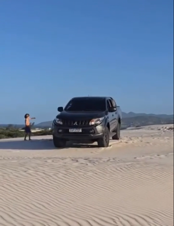 Uma caminhonete foi visto trafegando sobre a duna, área cujo acesso de veículos é totalmente proibido. A situação acendeu alertas e gerou indignação de moradores e ambientalistas, que cobraram ações imediatas de fiscalização pelos órgãos responsáveis.