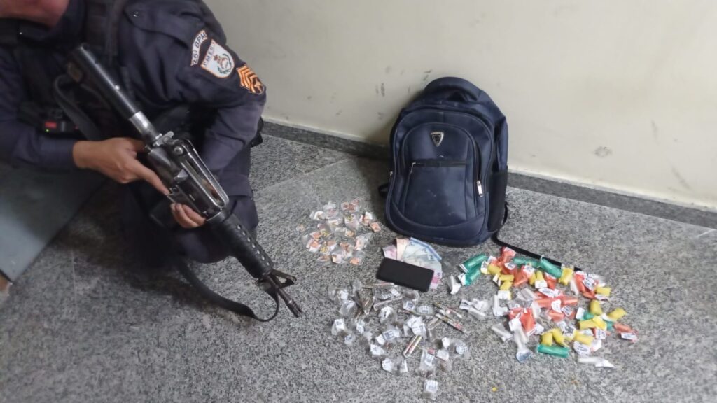 Os agentes encontraram drogas com ele e em uma mochila escondida em um matagal da região. Ao todo, foram apreendidas 55 cápsulas de cocaína, 55 buchas de maconha e 33 pedras de crack, além de um celular. O caso foi registrado na delegacia de Araruama.