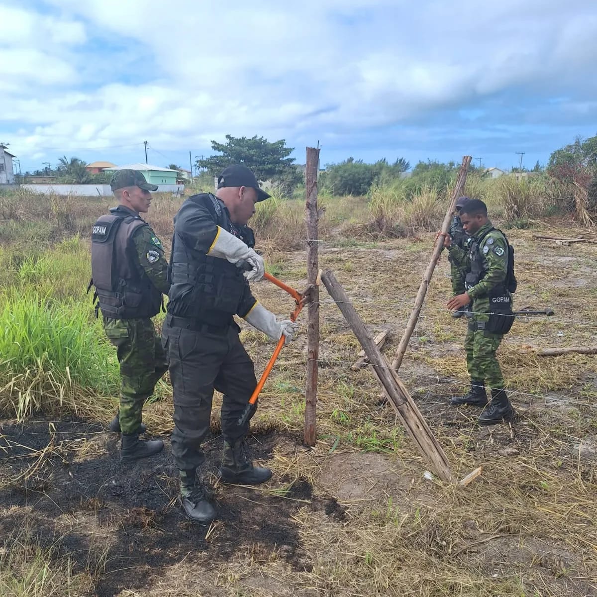 Uma operação conjunta, nesta quinta-feira (16), retirou demarcações irregulares em área de invasão de terras públicas no distrito de Figueira e no bairro Caiçara, em Arraial do Cabo. Participaram da ação agentes da Fiscalização de Meio Ambiente, Grupamento Operacional Ambiental e Marítimo (GOPAM), policiais do Proeis e a Ronda Ostensiva Municipal da Guarda (Romu).