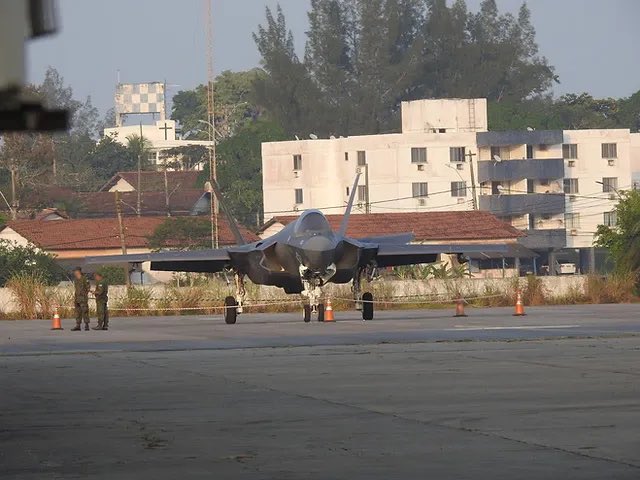 O Lockheed Martin F-35C Lightning II teve que descer na Base Aérea Naval de São Pedro da Aldeia no sábado (18). De acordo com agências especializadas em assuntos militares, foi depois que o piloto declarou emergência por conta do baixo nível de combustível na aeronave.