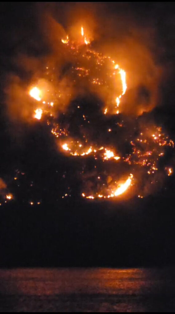 Um incêndio atingiu a área de mata no Morro da Prainha, em Arraial do Cabo, na noite desta terça-feira (20). Segundo a Prefeitura, além dos bombeiros, agentes do Grupamento Operacional Ambiente e Marítimo (Gopam) do município também atuaram no controle das chamas.