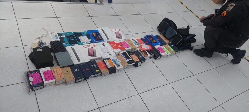 Ao todo, o grupo tentou furtar cinco notebooks, nove tablets e quatro celulares, além de caixas com acessórios. Entre os equipamentos usados pelo grupo para invadir a loja, foram apreendidos, além da escada, uma ponteira, marreta e um alicate.