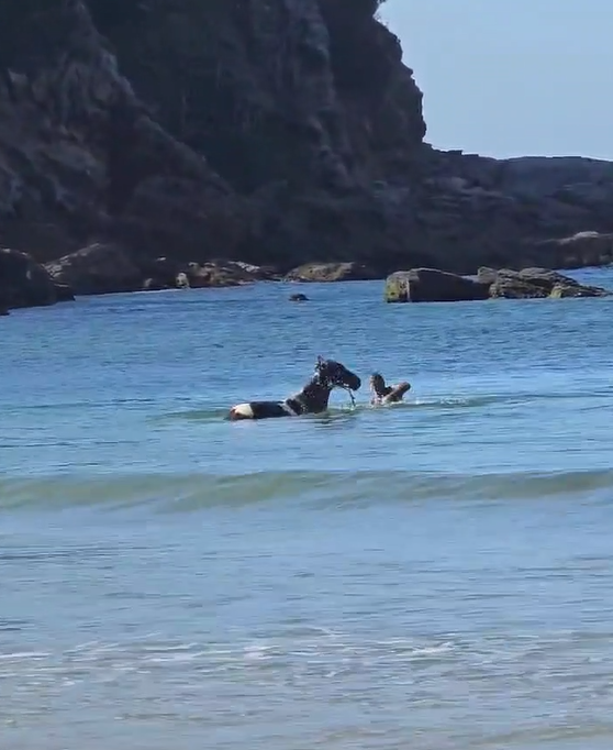 Cavalo é flagrado tomando banho de mar na Praia de Geribá, em Búzios