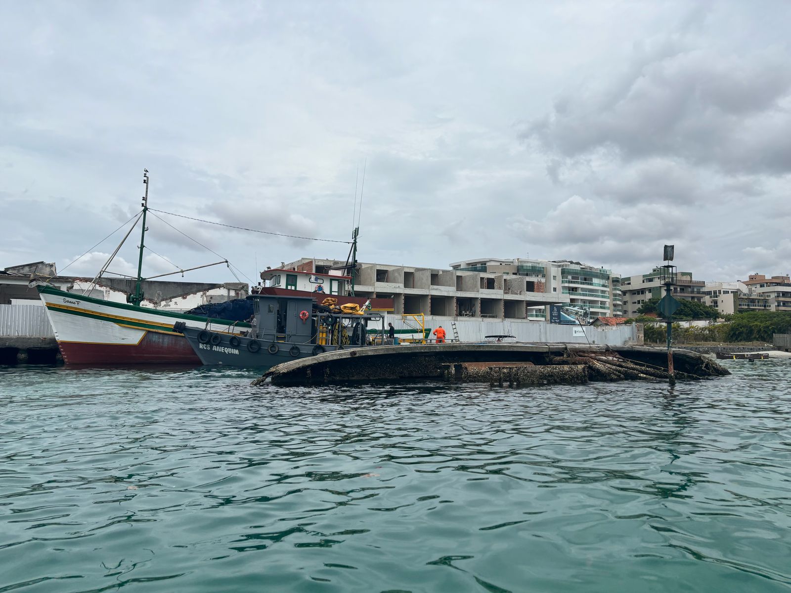 Começou nesta segunda-feira (17) a retirada da embarcação Moura Rio, naufragada há cinco anos no Canal do Itajuru, próximo à Ilha do Japonês, em Cabo Frio. O trabalho é realizado em uma operação conjunta entre a Prefeitura de Cabo Frio e a empresa RCS Subaquática.
