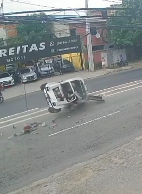 Imagens de câmeras de segurança registraram um acidente de trânsito grave, em Cabo Frio, nessa segunda-feira (17). Foi na Avenida América Central, na altura do bairro Praia do Siqueira. Nas imagens é possível ver um veículo buggy capotando na avenida, no sentido Centro. Dois ocupantes do veículo ficaram feridos. Um homem, que ficou na pista, aparentemente, desacordado. E uma mulher, que ficou presa embaixo do buggy. Pessoas que estavam próximas desviraram o veículo para que a mulher fosse socorrida.