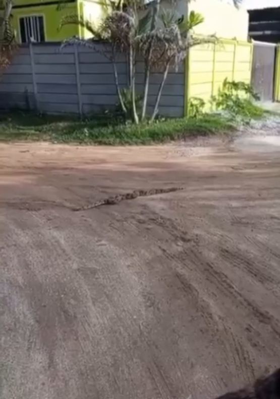 Os moradores fizeram pelo menos três tentativas passando com o carro sobre o animal, que conseguiu se desviar por duas vezes. Mas em pelo menos uma das tentativas, aparentemente, a jiboia é atingida e fica ferida na cauda. Desesperado, o animal conseguiu fugir para a mata próxima rapidamente.