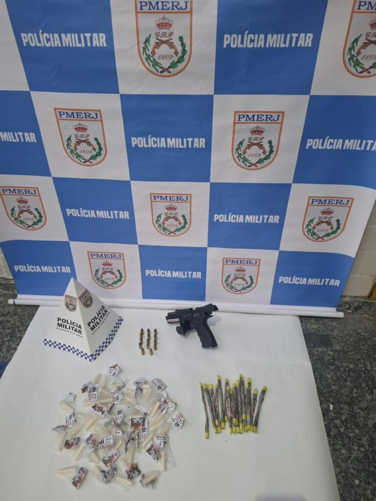 No local do confronto, a policia apreendeu uma pistola usada pelo homem que morreu, além de munições e drogas.