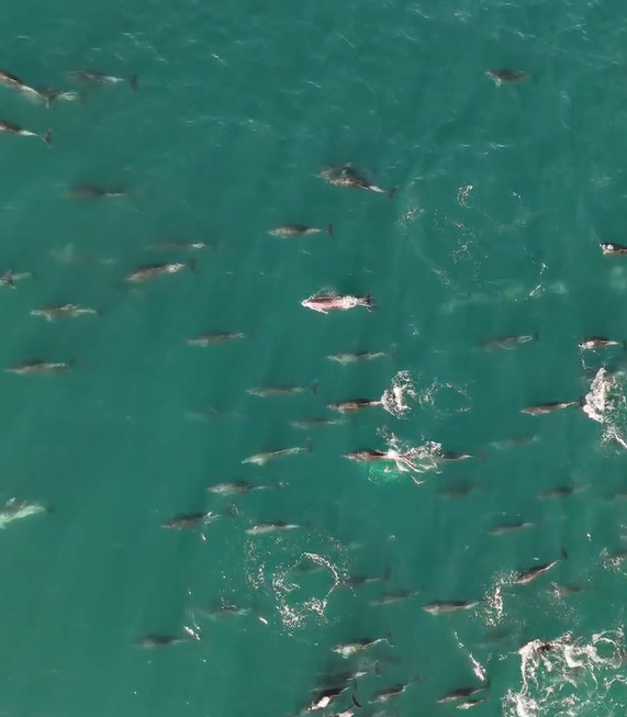 Cerca de 300 golfinhos foram avistados neste sábado (17), em Arraial do Cabo. É o segundo grande grupo de golfinhos a passarem pelo litoral da cidade nos últimos dois dias.