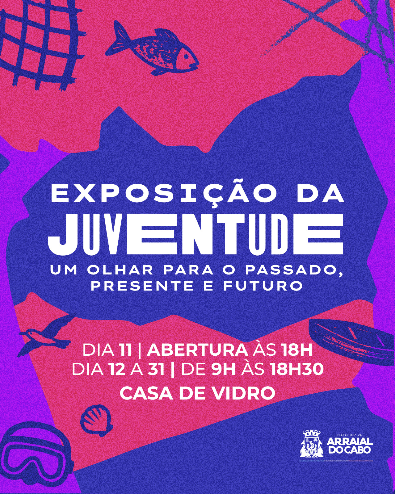 Durante o mês de agosto, Arraial do Cabo vai celebrar a criatividade jovem e a força da arte local com a exposição “Juventude: Um Olhar para o Passado, Presente e Futuro”. A mostra será aberta ao público, na Casa de Vidro José de Dome, dia 11 de agosto, às 18h, véspera do Dia da Juventude, e seguirá até o dia 31, reunindo obras de artistas visuais, fotógrafos e escultores que possuem uma relação profunda com a cidade, seja por nascimento, vivência ou afetividade.