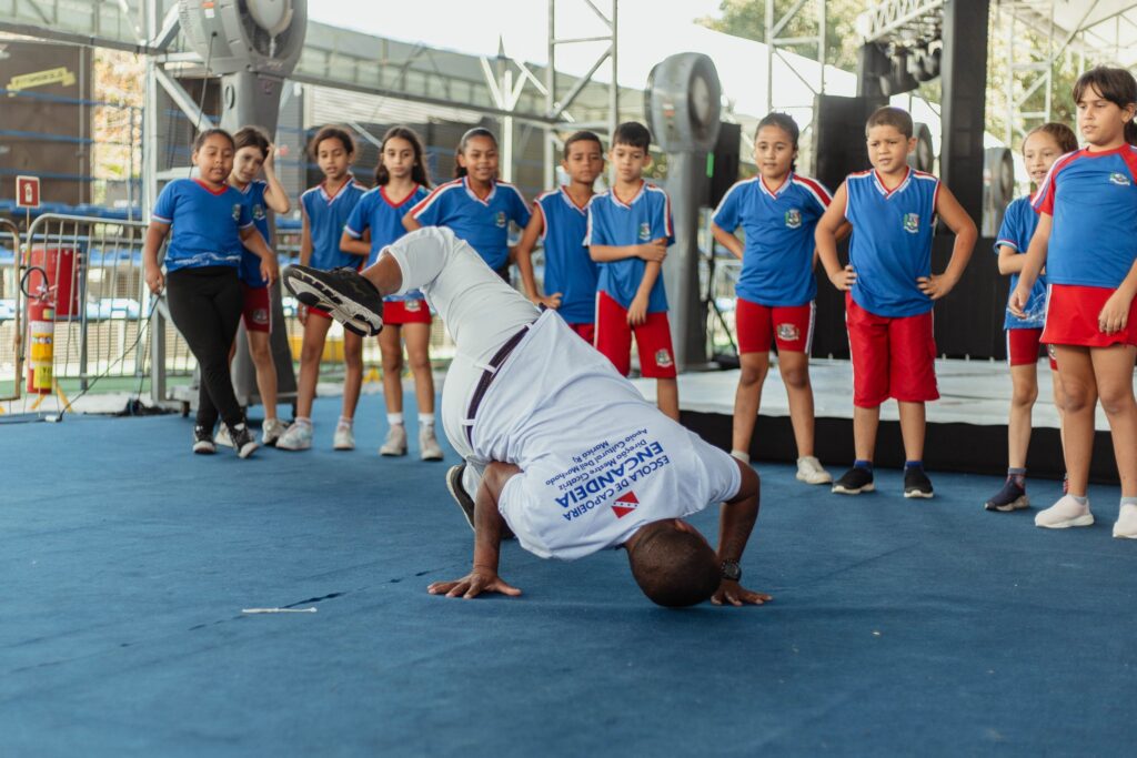 A experiência foi igualmente marcante para os alunos. João Pedro, de 8 anos, que participou da oficina, resumiu em poucas palavras sua emoção. “Achei a capoeira muito boa, brinquei com meus amigos e gostei muito.”