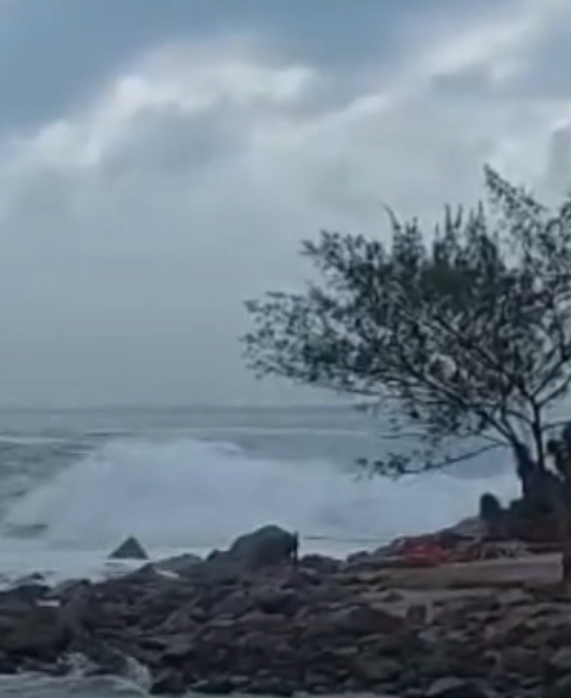 A passagem de uma frente fria no oceano deixa o mar agitado desde o fim da última semana, com ondas de até 1,5 metros. Os bombeiros já tinha emitido alerta sobre as condições do mar e os perigos ao acessar costões neste período.