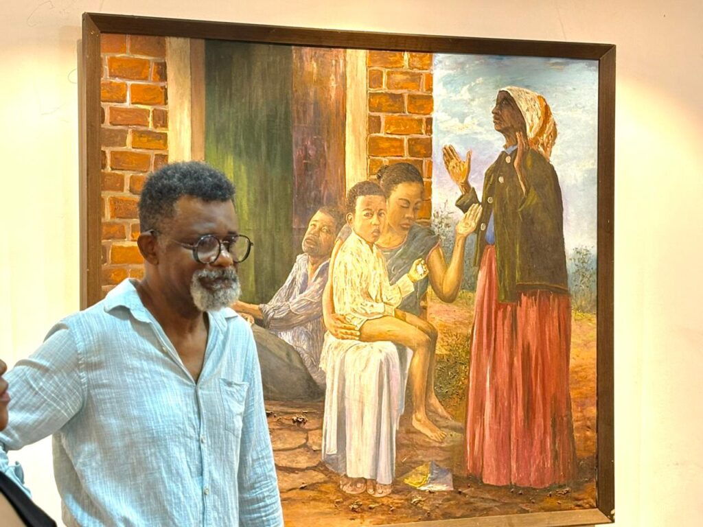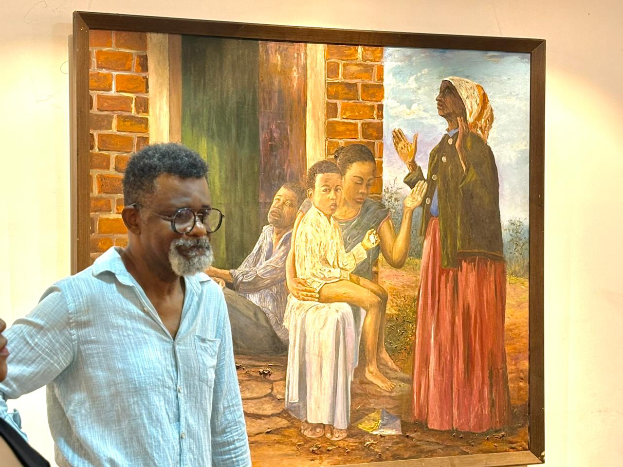Reunindo cerca de 44 obras, produzidas ao longo de três anos, a exposição conduz o visitante a uma verdadeira imersão na ancestralidade afro-brasileira. A narrativa visual começa com telas abstratas, que, segundo o artista, representam o criacionismo e a origem do ser humano a partir do barro. Em seguida, o percurso expositivo ganha força com obras que retratam navios negreiros, capoeira, figuras históricas e outros elementos essenciais da memória negra no Brasil.
