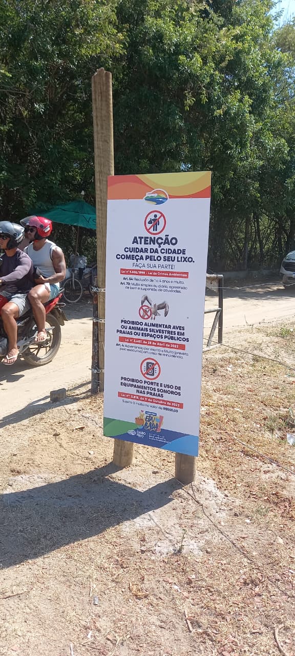 Na semana anterior à instalação das placas, a área também recebeu um mutirão de limpeza, realizado pela Equipe Verde em parceria com a Companhia de Serviços de Cabo Frio (Consercaf). Durante a ação, foram recolhidos resíduos deixados por frequentadores, reforçando a preocupação com a conservação do espaço.