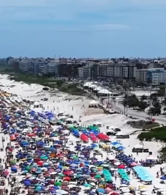 Chuva não espanta turistas: Praia do Forte fica cheia em Cabo Frio; sexta segue chuvosa e sol só deve aparecer no sábado