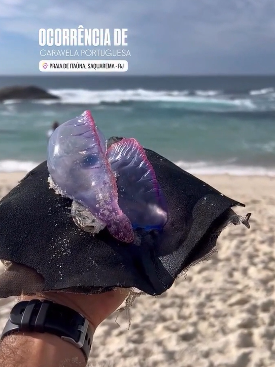 Duas caravelas-portuguesas foram encontradas neste fim de semana em praias de Saquarema, acendendo o alerta para banhistas e frequentadores do litoral. Um dos registros ocorreu na Praia de Itaúna, a mais movimentada da cidade, e outro na Praia do Boqueirão, na manhã de sábado (24).