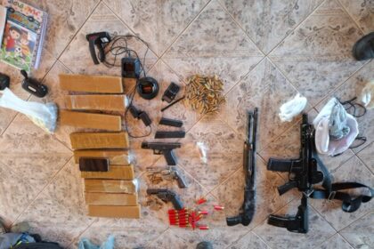 A polícia apreendeu um fuzil e grande quantidade de armas e drogas…