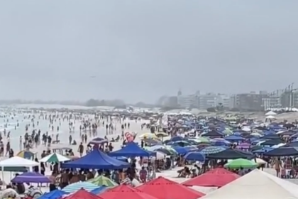 Chuva não espanta turistas: Praia do Forte fica cheia em Cabo Frio; sexta segue chuvosa e sol só deve aparecer no sábado