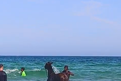 Em meio ao calorão, banho de mar de cavalo na Praia do Forte, em Cabo Frio, cria polêmica